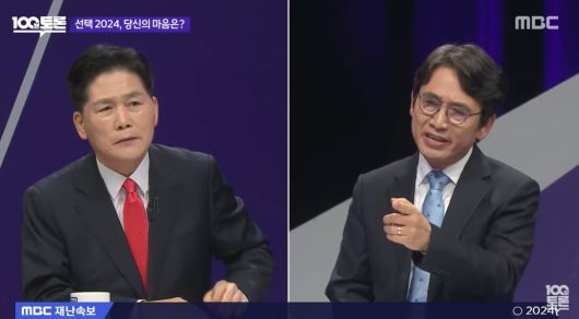 2일 밤 방송된 MBC 100분토론에서 김진(왼쪽) 전 중앙일보 논설위원과 유시민 전 노무현재단 이사장이 토론하고 있다. /MBC 유튜브 |