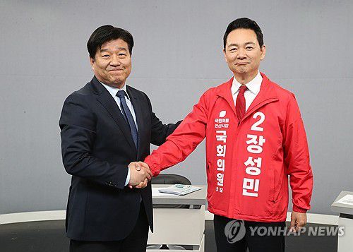 두 후보는 이날 오전 안산상공회의소 스튜디오에서 안산상록구선거방송토론위원회가 주최하고 SK브로드밴드 한빛방송이 녹화한 TV 토론회를 했다.