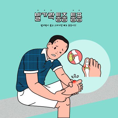 통풍은 40~50대 남성에서 발생 빈도가 가장 높으며 대개 극심한 통증을 동반한다. 대부분 엄지발가락에서 발생하고, 발목과 무릎에서도 나타난다. |