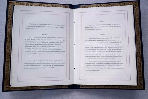북대서양조약기구(NATO·나토)가 창설(1949년 4월 4일) 75주년을 맞아 설립의 근간인 '워싱턴 조약(사진)' 원본을 공개했다.