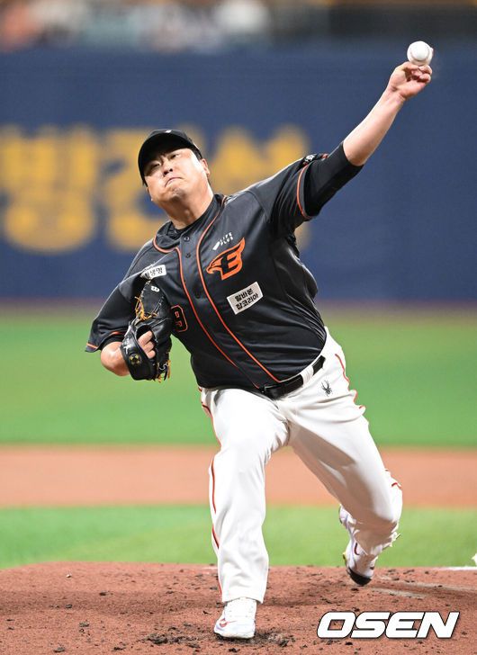 [OSEN=고척, 이대선 기자] 5일 오후 서울 고척스카이돔에서 2024 신한 SOL Bank KBO리그 키움 히어로즈와 한화 이글스의 경기가 열렸다.키움은 하영민, 한화는 류현진을 5일 선발 투수로 내세운다.1회말 무사에서 한화 선발투수 류현진이 역투하고 있다. 2024.04.05 /sunday@osen.co.kr |