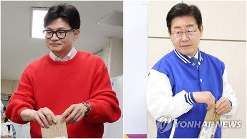 사전투표하는 한동훈과 이재명 |