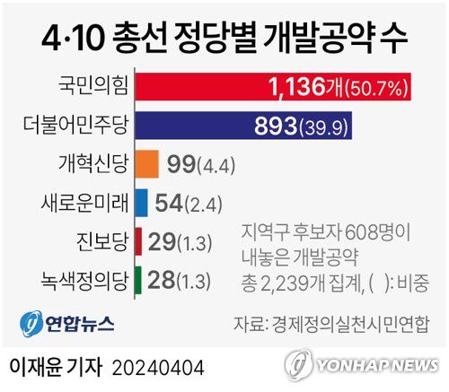 [그래픽] 4·10 총선 정당별 개발공약 수 |