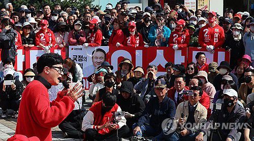 대전에서 지지 호소하는 한동훈 비대위원장 |