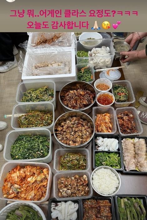 꼬막무침, 두릅 등 다양한 메뉴가 시선을 끄는 사진이 퍼지면서 7일 SNS 및 온라인 커뮤니티에까지 누리꾼들의 반응이 나왔다. “반찬 진짜 섹시하다”“서포트가 반찬가게 수준”“어머니와 딸들의 덕질 클라스”“심각하게 맛있겠다” 등의 반응이 세대를 불문하고 터져 나오며 눈길을 끌었다.