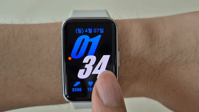 다만 베젤이 넓은 편인 데다 특히 하단 베젤이 더 넓어 시계 화면은 밝은 색보다 어두운 색을 추천한다. 시계 화면 종류는 화면 스크롤을 다 내리기 어려울 정도로 많아서 소비자들에게 다양한 선택권을 준다. 이 중 화면 10개까지 즐겨찾기가 가능해 갤럭시 핏3에서도 선택이 가능하다.