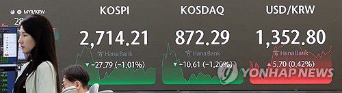 하락 마감한 코스피ㆍ코스닥 지수 |