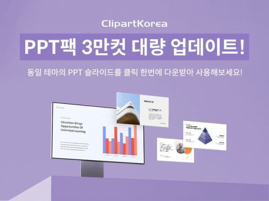 클립아트코리아는 PPT팩 3만컷 대량 업데이트를 진행했다고 8일 밝혔다.