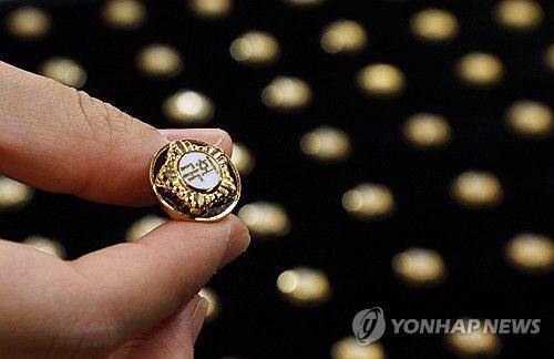 (서울=연합뉴스) 한종찬 기자 = 8일 국회 의원회관에서 열린 제22대 국회 개원종합지원실 현판식에서 관계자가 제22대 국회의원들이 착용할 300개의 국회의원 배지를 공개하고 있다. 2024.4.8 [공동취재]
