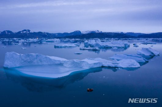 [그린란드=AP/뉴시스] 지구에서 가장 추운 남극의 기온이 계절 평균보다 38.5도 이상 높았던 것으로 관측돼 세계 기후 생태계에 경고등이 켜졌다. 사진은 그린란드 빙하가 녹는 장면. 2024.04.08. |