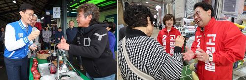 선거운동 하는 제주시갑 문대림·고광철 후보 |