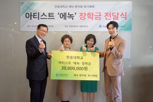 8일 한동대에 따르면 에녹의 팬카페 '화기에에'는 최근 에녹의 모교인 한동대에 3천만원의 장학금을 전달했다.