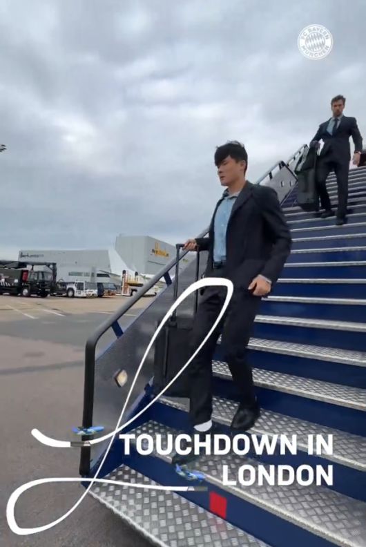 선수단이 영국에 도착하자 뮌헨은 선수들이 차례차례 비행기에서 내리는 영상도 게시했다. "터치다운 인 런던"이라고 적혀 있는 영상 속에서 김민재는 이번엔 외투를 입은 채로 짐을 내리며 영국 런던에 입성했다.