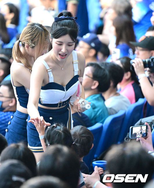 공연을 마친 이다혜는 내야 응원단상으로 향해 팬들과 호흡하며 응원을 펼쳤다. 팬들의 수많은 카메라를 향해 미소와 하트를 날리며 에너지를 전했다. 대만이 반할만 했다.