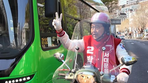 서울 서대문을에 출마한 국민의힘 박진 후보는 스쿠터를 직접 몰고 지역 골목을 누비는 선거운동을 선보였다.