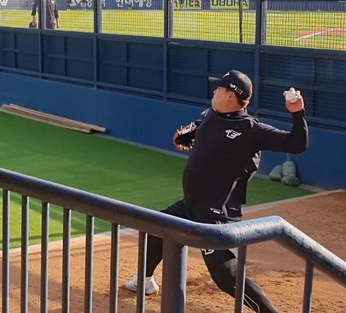 선발 투수들은 등판 일정 사이에 불펜에서 공을 던지며 뭉친 어깨를 풀고 다음 선발 일정을 준비한다.