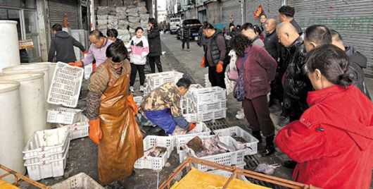 한국 식탁에 오른 바지락, 오징어 등 일부 중국산 수산물은 중국 가공 회사들이 북한 노동자 최소 수백 명을 고용해 수출한 것으로 나타났다. 사진은 지난해 4월 중국 랴오닝성 단둥시 둥강의 한 수산물 도매시장에서 북한산 추정 제품을 비롯해 수산물을 판매하는 모습. /단둥=이벌찬 특파원 |