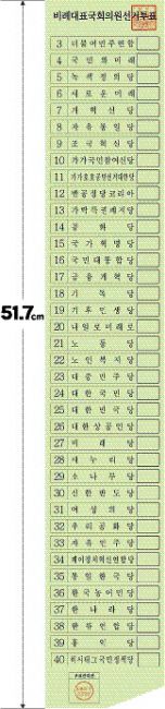 비례대표 투표용지 / 선관위 제공