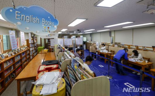 [서울=뉴시스] 정병혁 기자 = 제22대 국회의원 선거일인 10일 서울 종로구 상명대학교사범대학부속초등학교 도서관에 마련된 투표소를 찾은 유권자들이 투표를 하고 있다. 2024.04.10. jhope@newsis.com