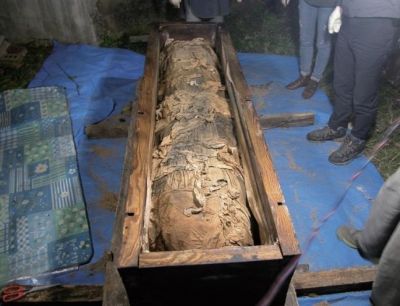 2014년 경상북도 청도군에서 발견된 미라 [이미지 출처=국립대구박물관 제공] |