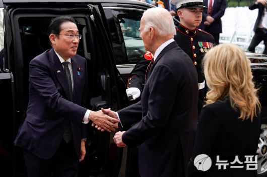 백악관에 도착한 기시다 총리와 악수하는 바이든 대통령 [사진=로이터 뉴스핌] 2024.04.10 kwonjiun@newspim.com |