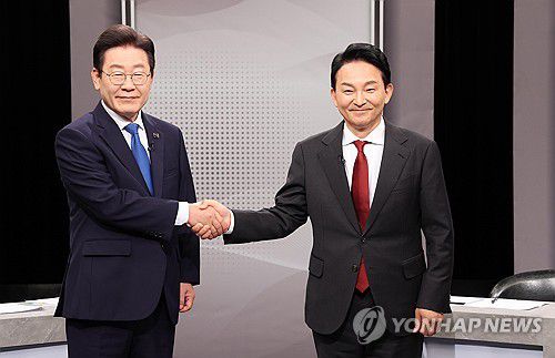 후보자 토론회서 악수하는 이재명-원희룡 |