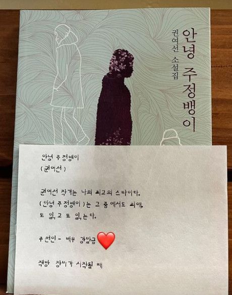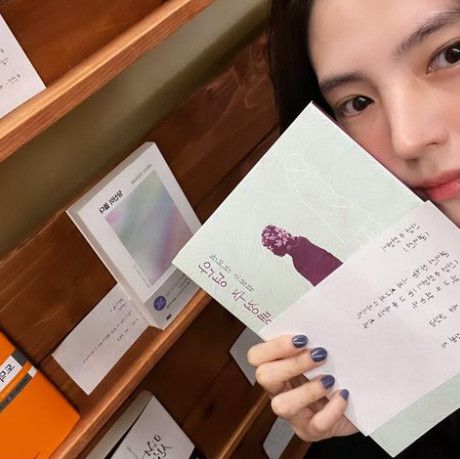 사진에는 서점에 방문한 것으로 보이는 한소희가 권연선 작가의 '안녕 주정뱅이'를 들고있는 모습이 담겼다. 더불어 배우 강말금이 추천사를 적은 것도 함께 공유했다.