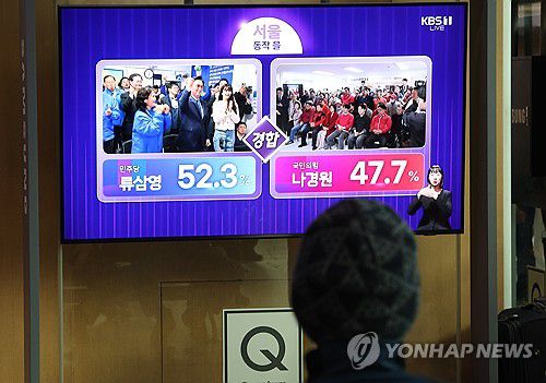 서울 동작을 출구조사 지켜보는 시민들 |