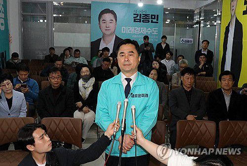당선 소감 밝히는 새로운미래 김종민 후보 |