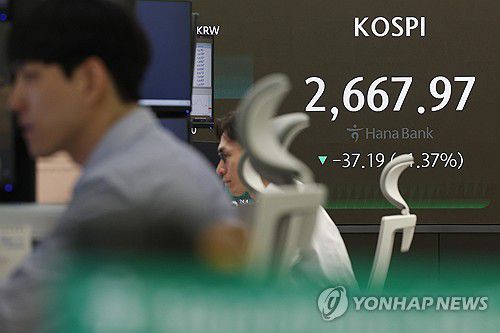 이날 오전 9시 23분 현재 코스피는 전장보다 36.63포인트(1.35%) 내린 2,668.53을 나타내고 있다.
