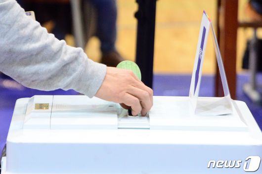 제22대 국회의원 선거 본투표날인 10일 오전 광주 서구 상무고등학교에 마련된 투표소에서 유권자들이 투표용지를 투표함에 넣고 있다. 2024.4.10/뉴스1 ⓒ News1 이승현 기자 |