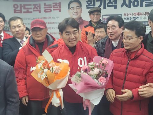 (부산=연합뉴스) 오수희 기자 = 제22대 총선 지상파 방송사 3사 출구조사 결과 부산 사하갑 선거구에서는 현역 더불어민주당 최인호 후보와 국민의힘 이성권 후보가 오차 범위 내 접전을 펼칠 것으로 예상됐다.