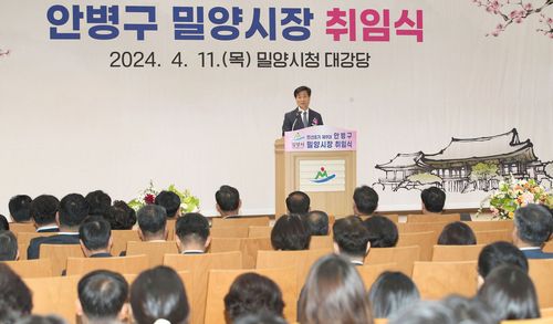 (밀양=연합뉴스) 김동민 기자 = 제22대 총선과 함께 지난 10일 치러진 보궐선거에서 당선된 안병구 신임 경남 밀양시장이 본격적인 업무에 들어갔다.