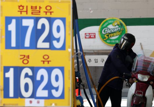9일 오후 서울시내 한 주유소에 유가정보가 표시돼 있다. 뉴시스 |