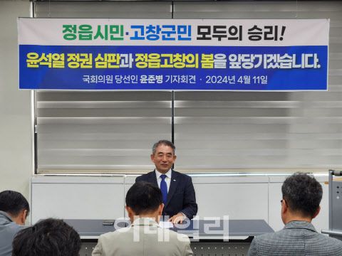 윤 의원은 이날(11일) 정읍시청 브리핑룸에서 기자회견을 열고 이 같이 밝히면서 “압도적인 지지로 주민 여러분을 위해 일할 수 있는 기회를 주셔서 진심으로 감사한다”고 말했다.