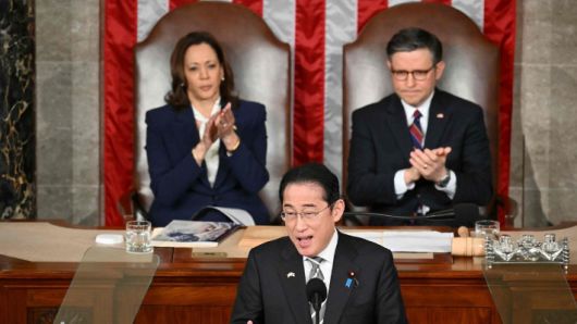 일본 총리가 미 의회 상·하원 합동회의에서 연설한 것은 두 번째로, 2015년 4월 아베 신조 전 총리 이후 9년 만이다.