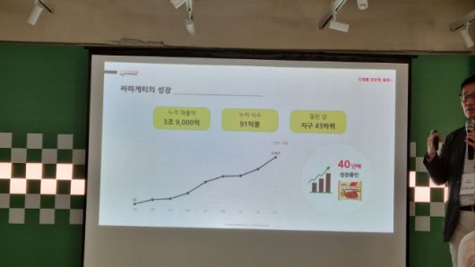 심규철 농심 면마케팅실장이 12일 서울 성수동에서 문을 연 팝업스토어에서 짜파게티의 성장세를 설명하고 있다./제공=이수일 기자