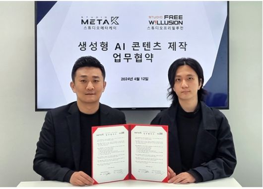 김광집 스튜디오메타케이 대표는 "생성형 AI를 이용한 다양한 콘텐츠 제작 방식이 제시되고 있다"면서 "생성형 AI 영상콘텐츠 기획력과 경험을 보유한 스튜디오프리윌루전과 협업해 새로운 트렌드를 선도할 수 있을 것"이라고 말했다.