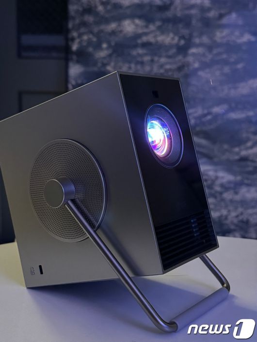 LG 시네빔 큐브는 360도 돌아가는 손잡이가 거치대 역할을 한다. 2024.4.11 / 뉴스1 ⓒ News1 강태우 기자 |