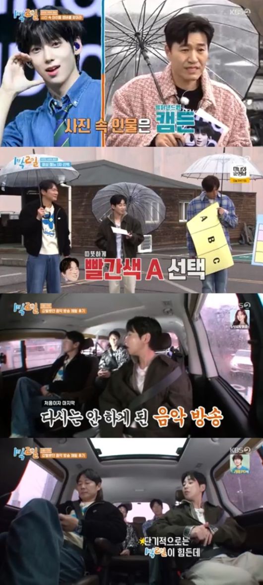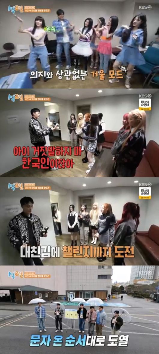 14일 방송된 KBS 2TV '1박 2일 시즌4'에서는 연정훈, 김종민, 문세윤, 딘딘, 나인우, 유선호가 아이돌 가수들을 만나는 모습이 전파를 탔다.