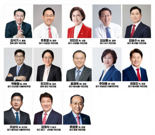 경북에서는 경주 김석기, 경산 조지연 등 2명이, 경기에서는 안산(병) 박해철, 하남(갑) 추미애, 용인(갑) 이상식 등 3명이 영남대 동문이다.