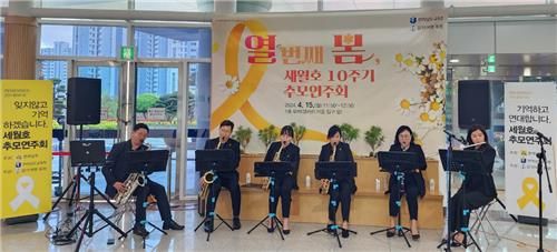 6중주 관악 앙상블 팀 음악여행 ‘동행’은 ‘천개의 바람이 되어’ 등 추모곡을 연주했다.