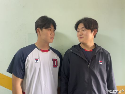 사태의 진정을 위해 야구 이야기를 꺼냈다. 인천고 출신인 김택연은 올해 1라운드 2순위로 최상위 지명을 거머쥔 채 두산에 입단했다. 서울고를 졸업한 이병헌 역시 2022년 1차 지명으로 입단한 촉망받는 기대주였다. 프로에서 한솥밥을 먹게 된 현재, 서로의 투구를 어떻게 보고 있을까.