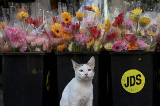 한 꽃시장 상점 앞에 고양이 한 마리가 앉아있다. (사진은 기사 내용과 직접 관련 없음) /사진=뉴스1 |