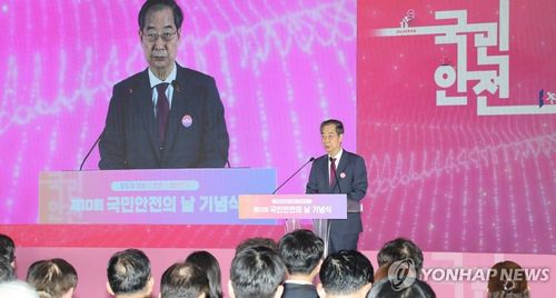 한 총리는 "이는 우리 사회의 안전의식을 높이고, 안전사고 예방을 위해 앞장서서 노력해주신 국민 여러분 덕분"이라고 했다.