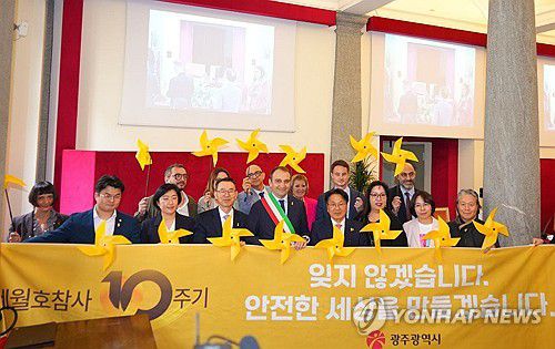 (광주=연합뉴스) 손상원 기자 = 광주시가 이탈리아 토리노시와 세월호 참사 10주기를 함께 추모했다.