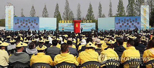 (안산=연합뉴스) 김인유 기자 = 세월호 참사 10주기인 16일 경기 안산시 화랑유원지에서 단원고 학생들을 비롯한 희생자들을 기리는 추모행사 '세월호 참사 10주기 기억식'이 열렸다.