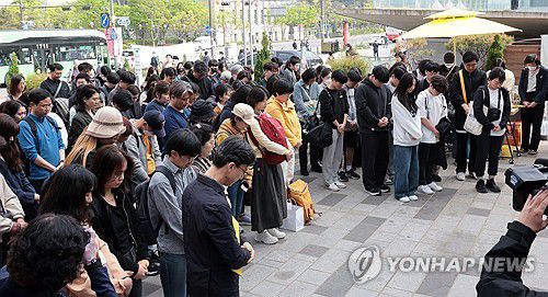 (서울=연합뉴스) 최원정 기자 = 세월호 참사 희생자 10주기인 16일 서울 중구 서울시의회 본관 앞 세월호 기억공간에는 시민 1천여명의 추모 행렬이 종일 이어졌다.