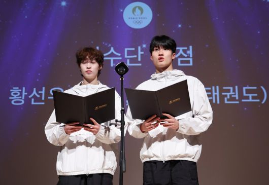 선수 대표로 나선 황선우(수영)와 이다빈(태권도)은 "선배님들이 태극기를 달고 처음 출전했던 런던 올림픽을 기억한다. 그분들의 비장함과 투혼을 잊지 않겠다. 땀과 눈물을 마음에 새겨 파리 올림픽에서 영광을 쟁취하겠다"라고 다짐했다.