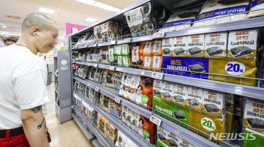[서울=뉴시스] 정병혁 기자 = 18일 서울시내 한 대형마트를 찾은 시민들이 김 제품을 살펴보고 있다. 국민반찬인 김 가격이 일제히 오르고 있다. 최근 조미김 시장 점유율 5위 안에 드는 광천김과 성경식품, 대천김이 이달 가격을 올렸다. 원재료 가격이 치솟자 전문 조미김 회사들이 먼저 제품 가격을 올리기 시작했고, 가격 인상 부담이 커지면 결국 대기업도 김 가격 인상이 불가피할 것이라는 관측이다. 2024.04.18. jhope@newsis.com